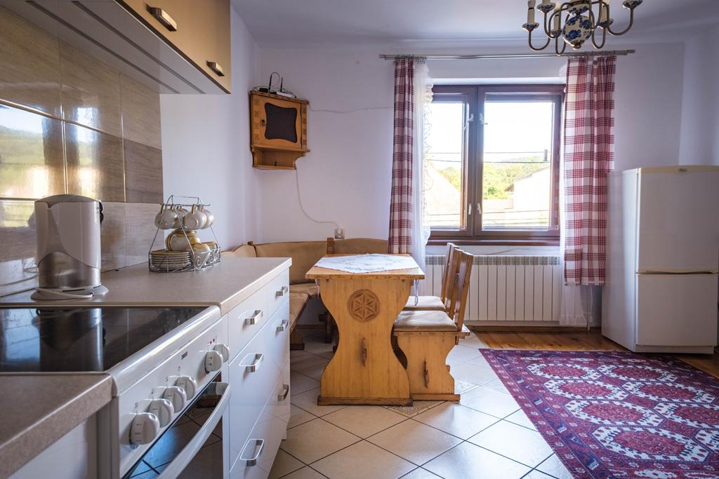 Do dyspozycji mamy 8 - 12 miejsc noclegowych w 4 pokojach, kuchnia z jadalnią z pełnym wyposażeniem, łazienki z ogrzewaniem podłogowym, ubikacja, hol, dwa tarasy.